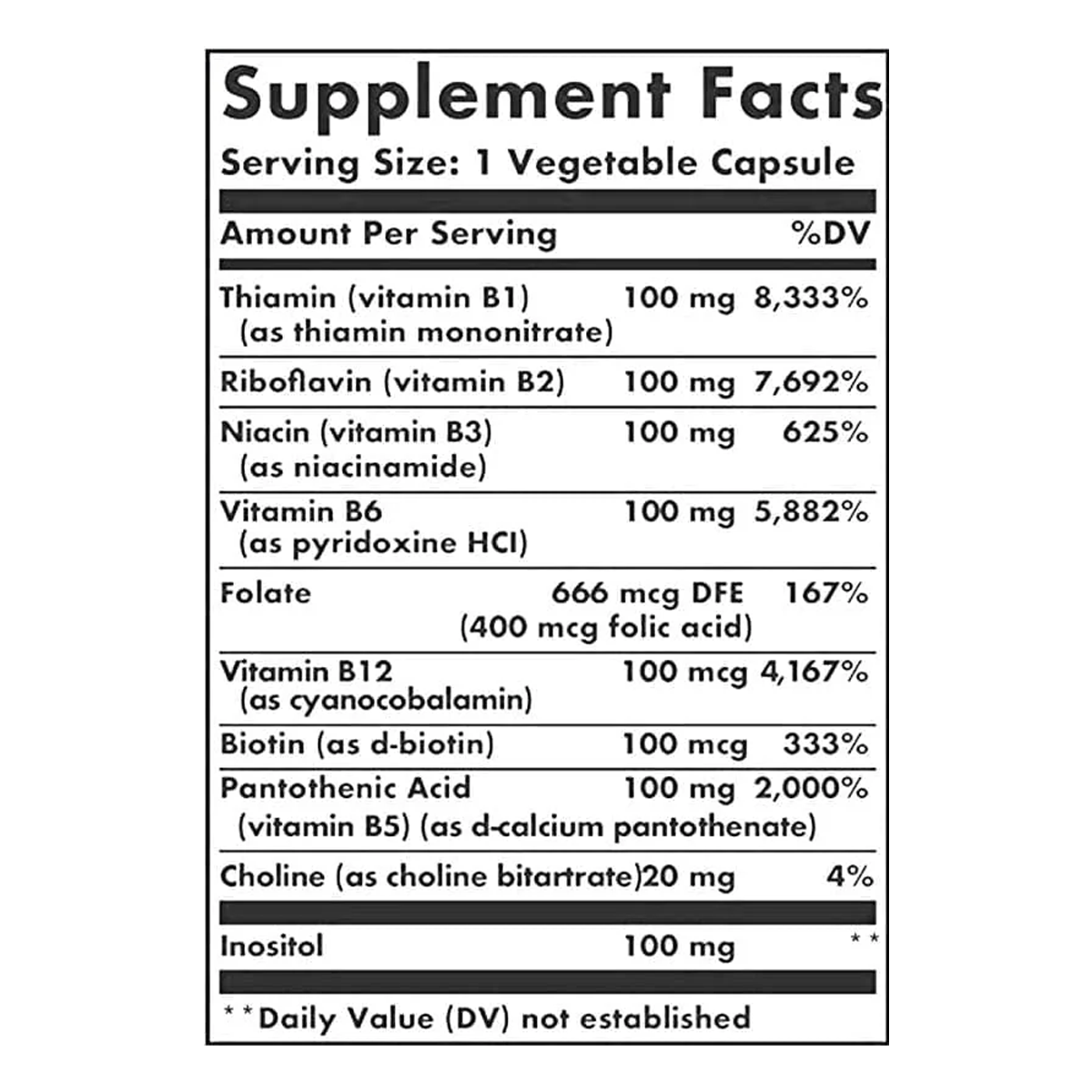 - Concentración: Vitamina B1 100 mg; Vitamina B2 100 mg; Vitamina B3 100 mg; Vitamina B6 100 mg