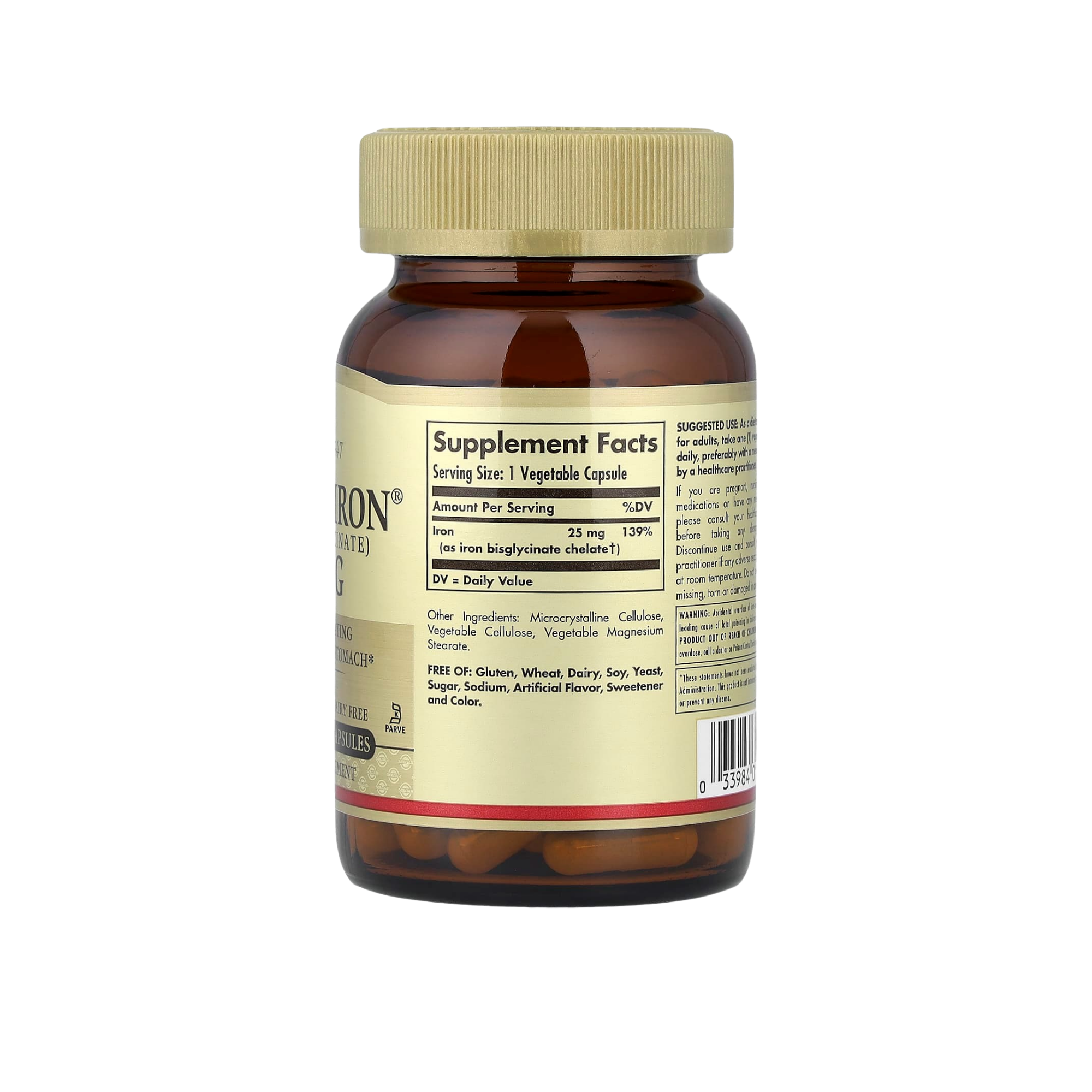 • Concentración: 25 mg de hierro por cápsula
