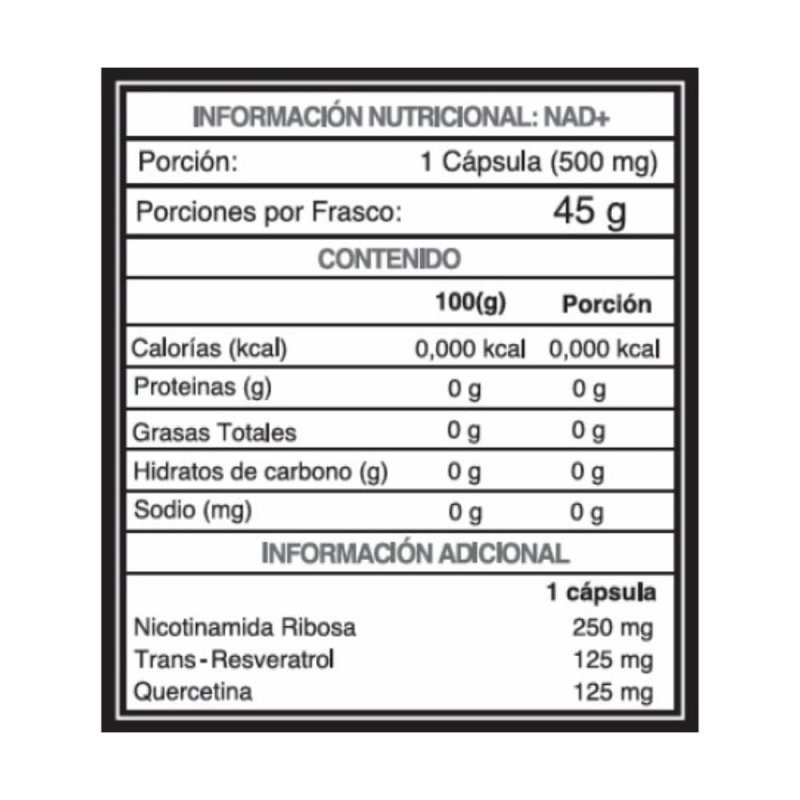 El NAD+ es una fórmula avanzada diseñada para potenciar tu energía y longevidad desde el nivel celular. Combina nicotinamida ribosa, trans-resveratrol y quercetina, tres compuestos clave que trabajan en sinergia para optimizar los niveles de NAD+, fundamentales para un envejecimiento saludable