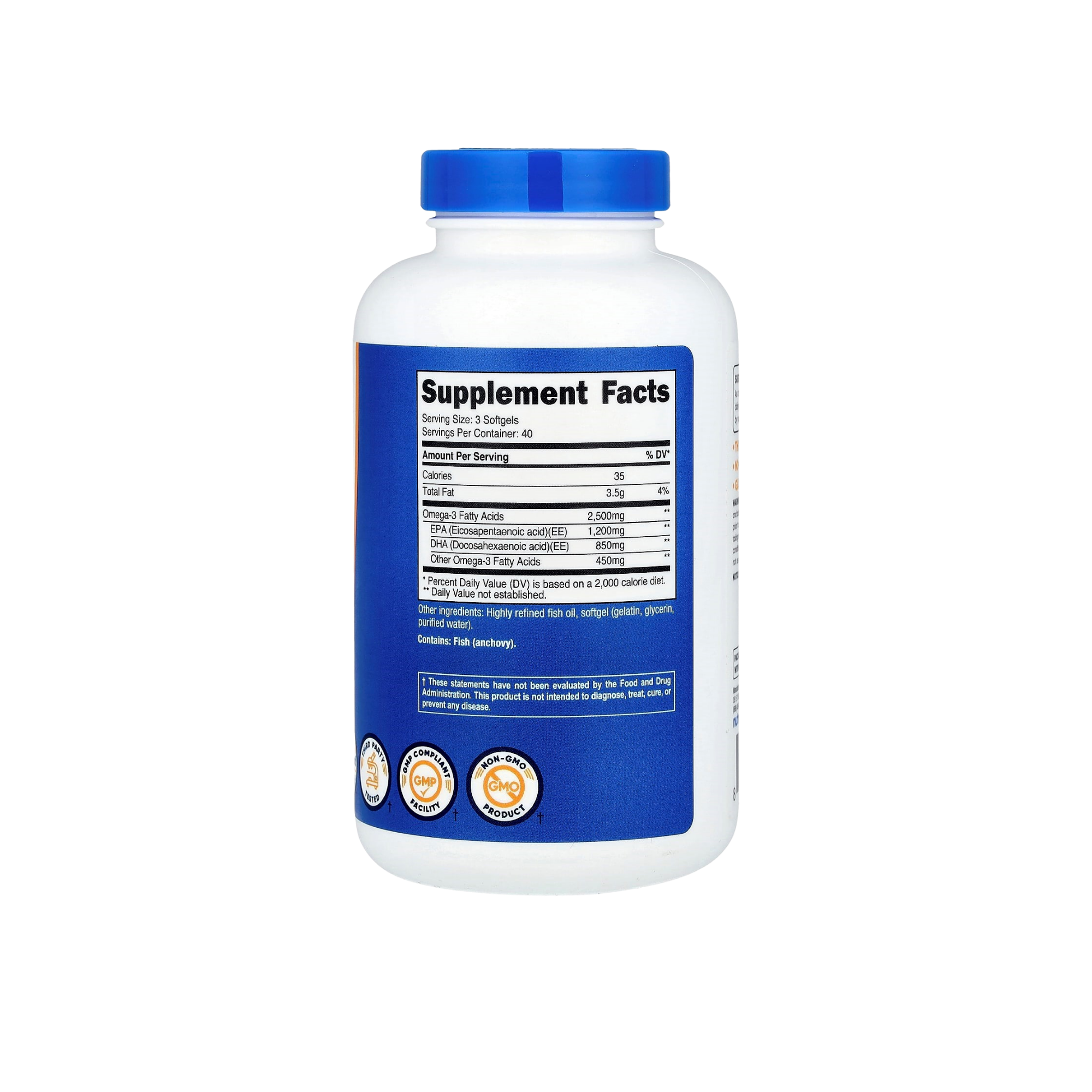 - Concentración: 2,500 mg de omega-3 por porción (1,200 mg de EPA y 850 mg de DHA por porción)