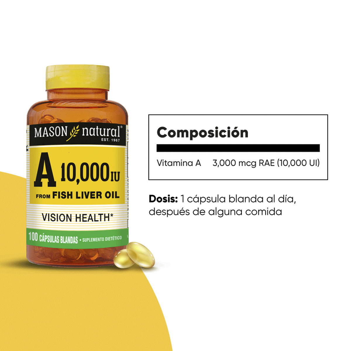 - Concentración: 3,000 mcg RAE por cápsula